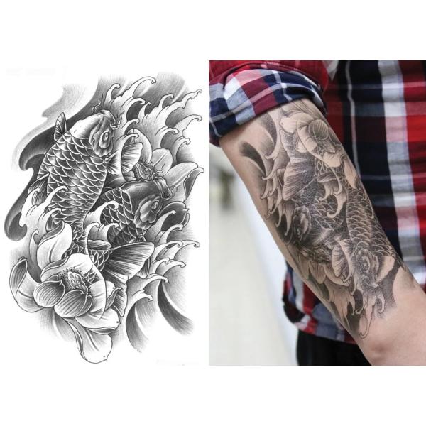 Yesallwas タトゥーシール 鯉 蓮の花 和柄 入れ墨シール リアル 大判 防水 長持ち 和彫り 刺青シール ボディーシール 子供 メンズ レディース Tatoo 15x21cm C 6枚セット 服装服饰 男士 服 ファッション小物 ファッション小物 タトゥーシール Whenbuy Jchere Com